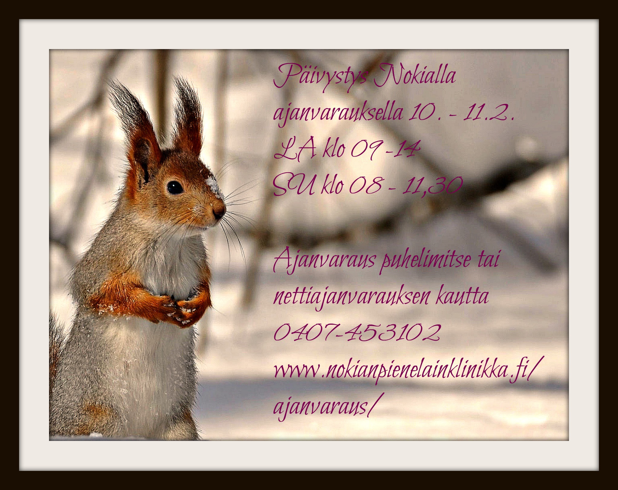 Päivystys Nokialla 10-11.2. , ajanvarauksella.Tervetuloa !