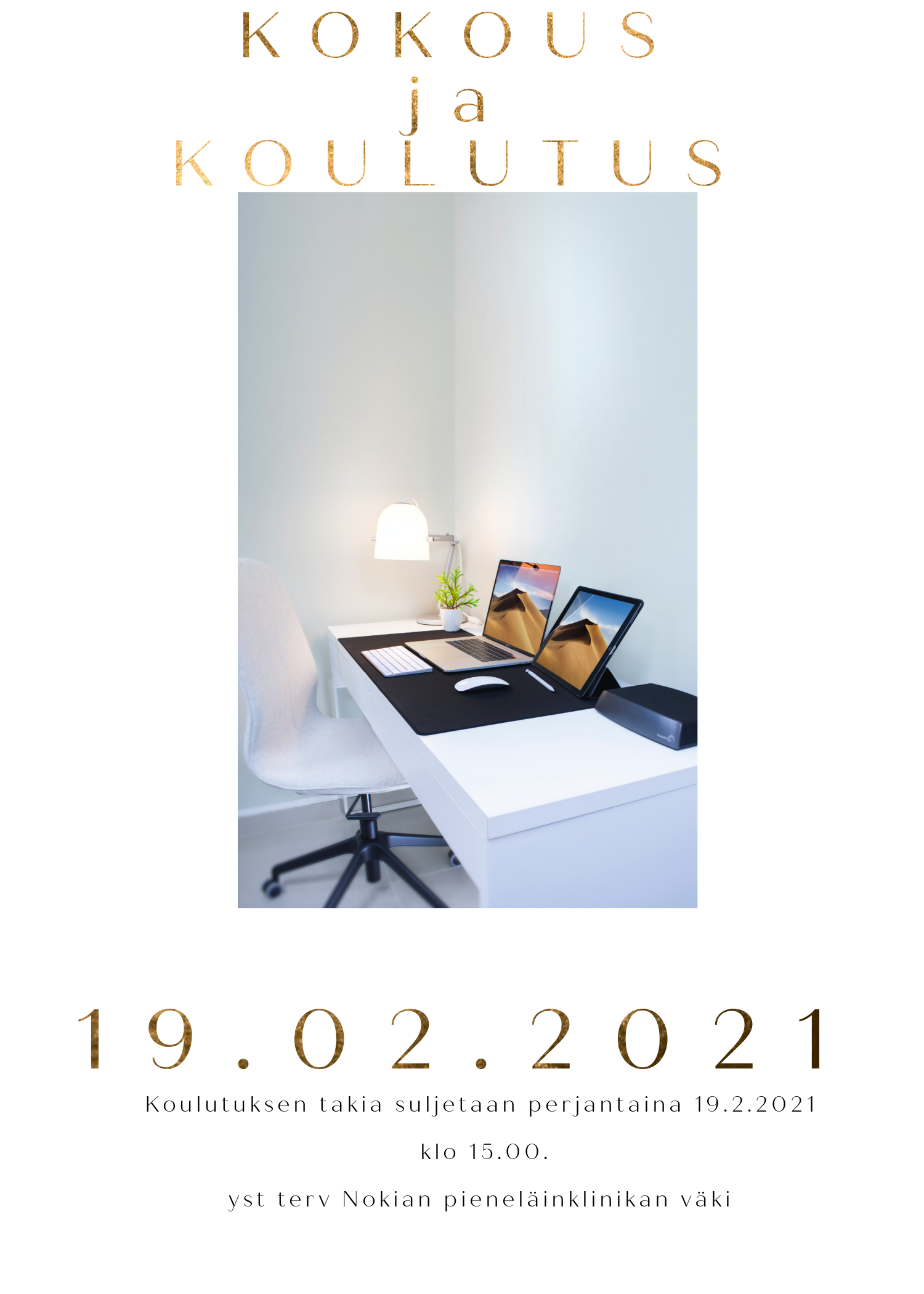 KOKOUS ja KOULUTUS pe 19.2.2021, jonka takia suljetaan klo 15.00